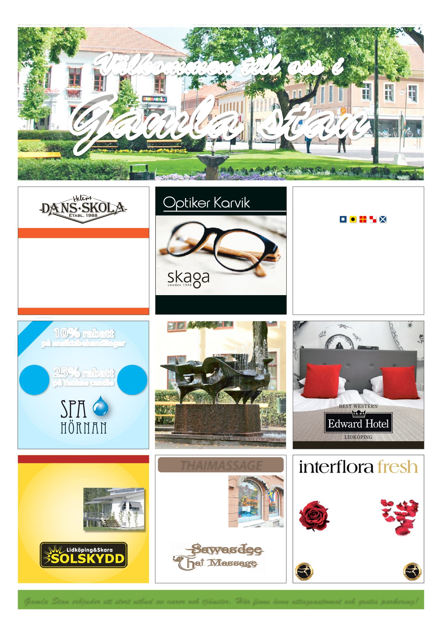 Gamla Stan erbjuder ett stort utbud av varor och tjänster. Här nns även uttagsautomat och gratis parkering!